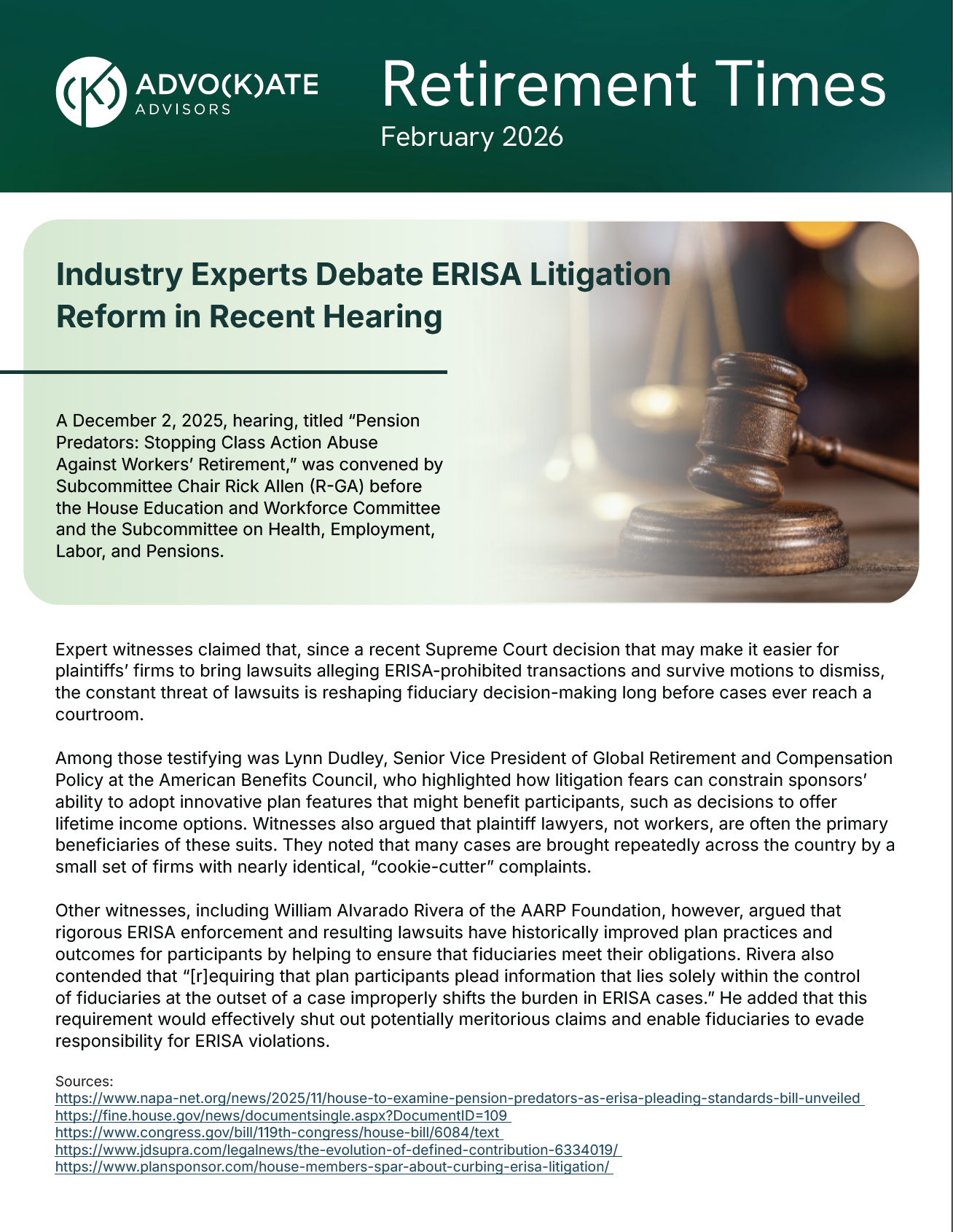 Industry Experts Debate ERISA Litigation Reform in Recent Hearing